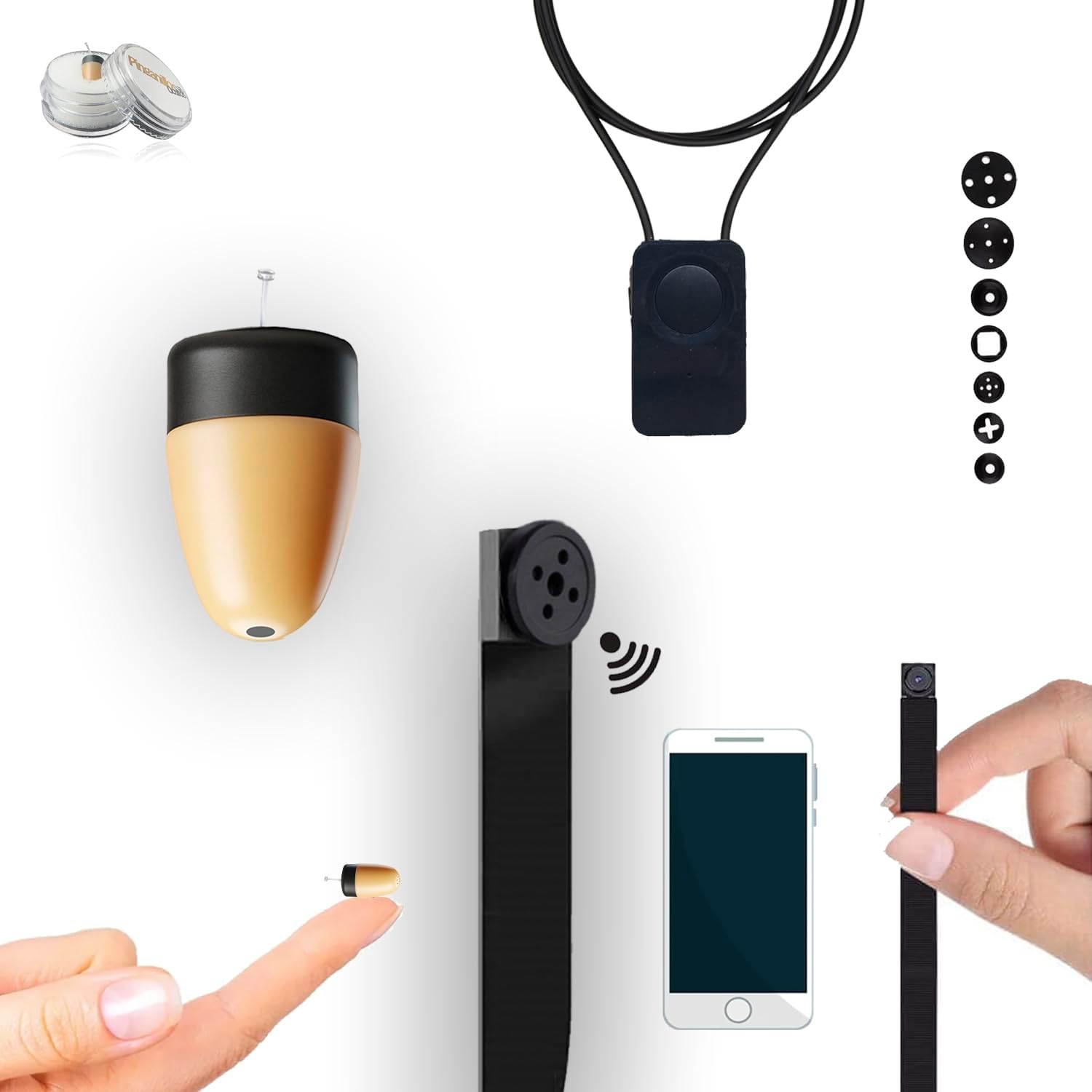 Pinganillos Ocultos VIP Pro Mini + Cámara Botón Espía WiFi (Carne)