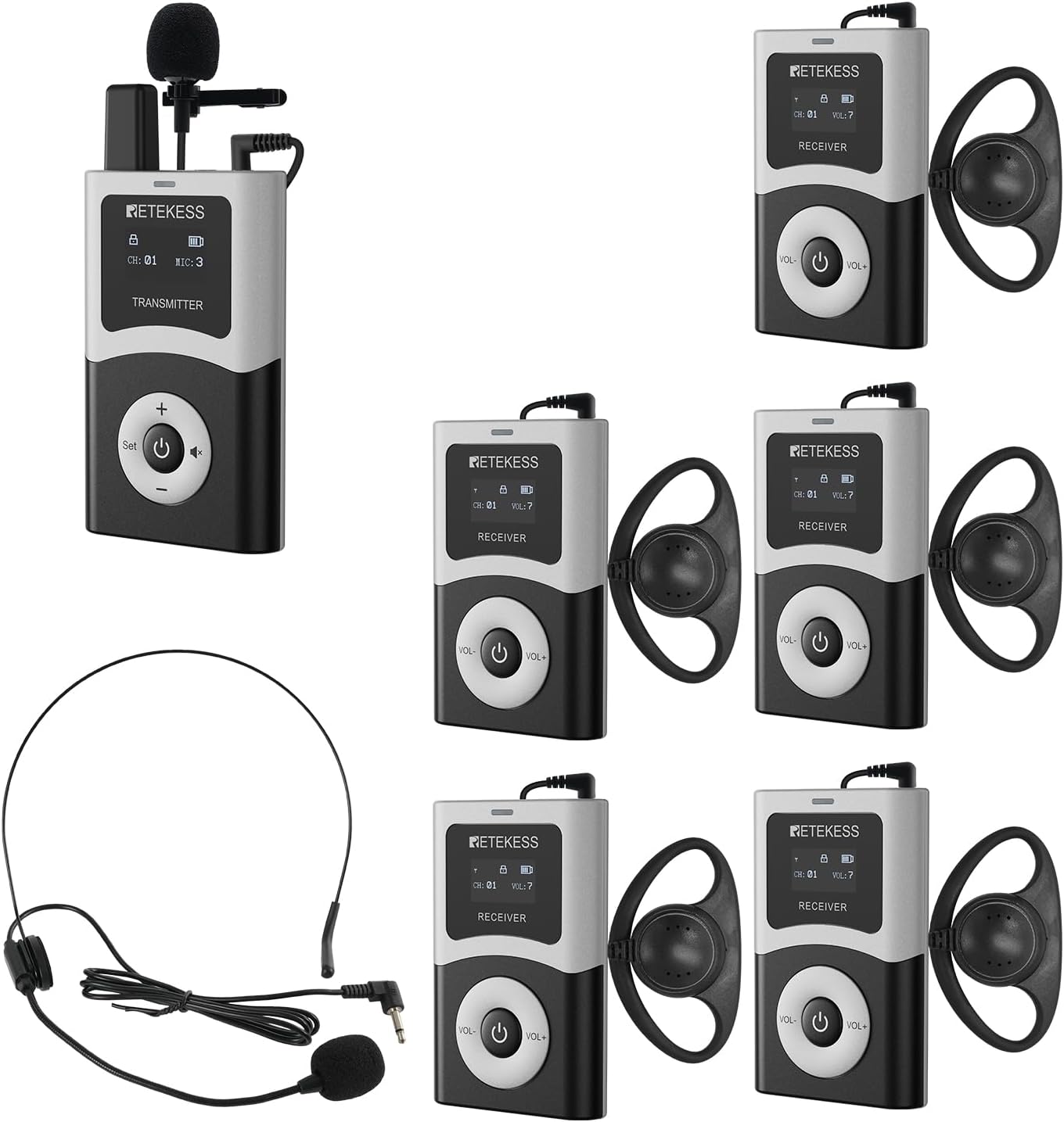 Retekess T130U (T130 4rd) Sistema Inalámbrico De Guía Turística, Juego De Micrófonos Guía, 200 Metros, Banda U Calidad De Sonido Clara, Operación con Una Sola Tecla, para Iglesias, Escuelas y Viajes