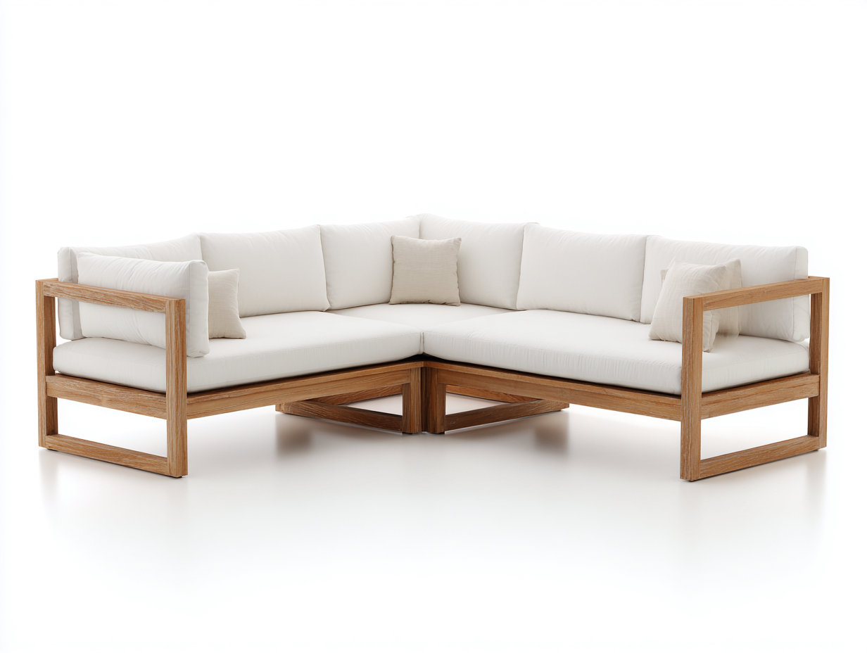 Sofás de jardín de madera con cojines 210x210x75 cm - madera natural-blanco - diseño modular exterior