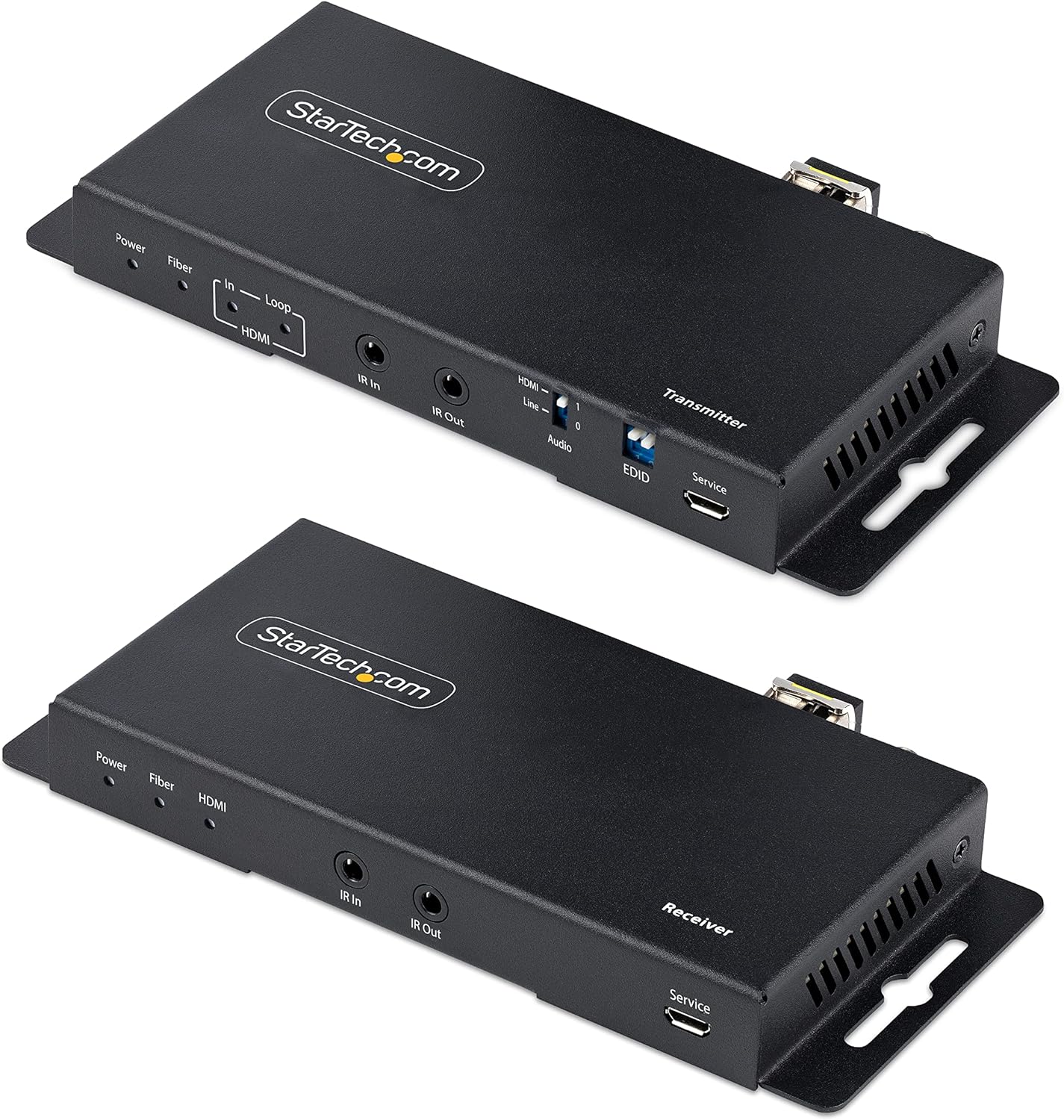 StarTech.com Juego Extensor de HDMI 4K por Fibra - 4K a 60Hz hasta 1km (Monomodo) o 330m (Multimodo) - Fibra Óptica LC - HDR - HDCP - Alargador de Audio/RS232/IR - Receptor Transmisor (ST121HD20FXA2)