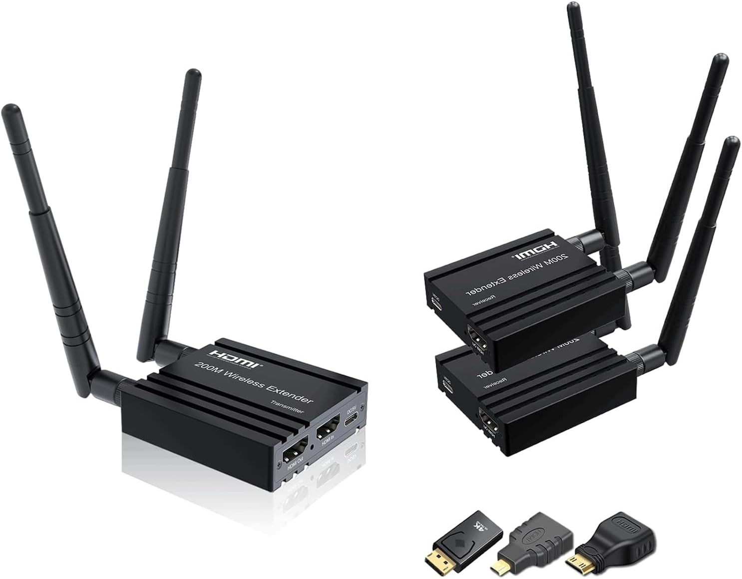 Wireless HDMI Transmitter and Receiver 4k decoding, One Transmitter and Two Receivers, Long Range Wireless Transmission 656FT/200M, Plug-Play, 2.4/5.8G for PC/Laptop/TV to Monitor/Projector/HDTV