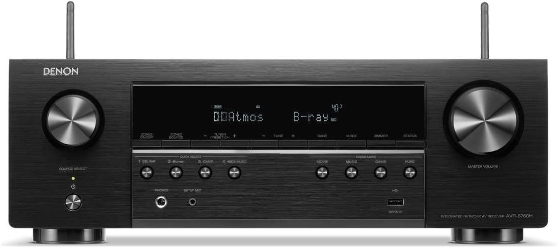 Denon Avr-S760H Receptor AV De 7.2 Canales con Dolby Atmos, DTS:X, 6 Entradas Hdmi y 1 Salida, 8K Hdmi, Bluetooth, WLAN, Airplay 2, Heos Multiroom, Compatible con Alexa