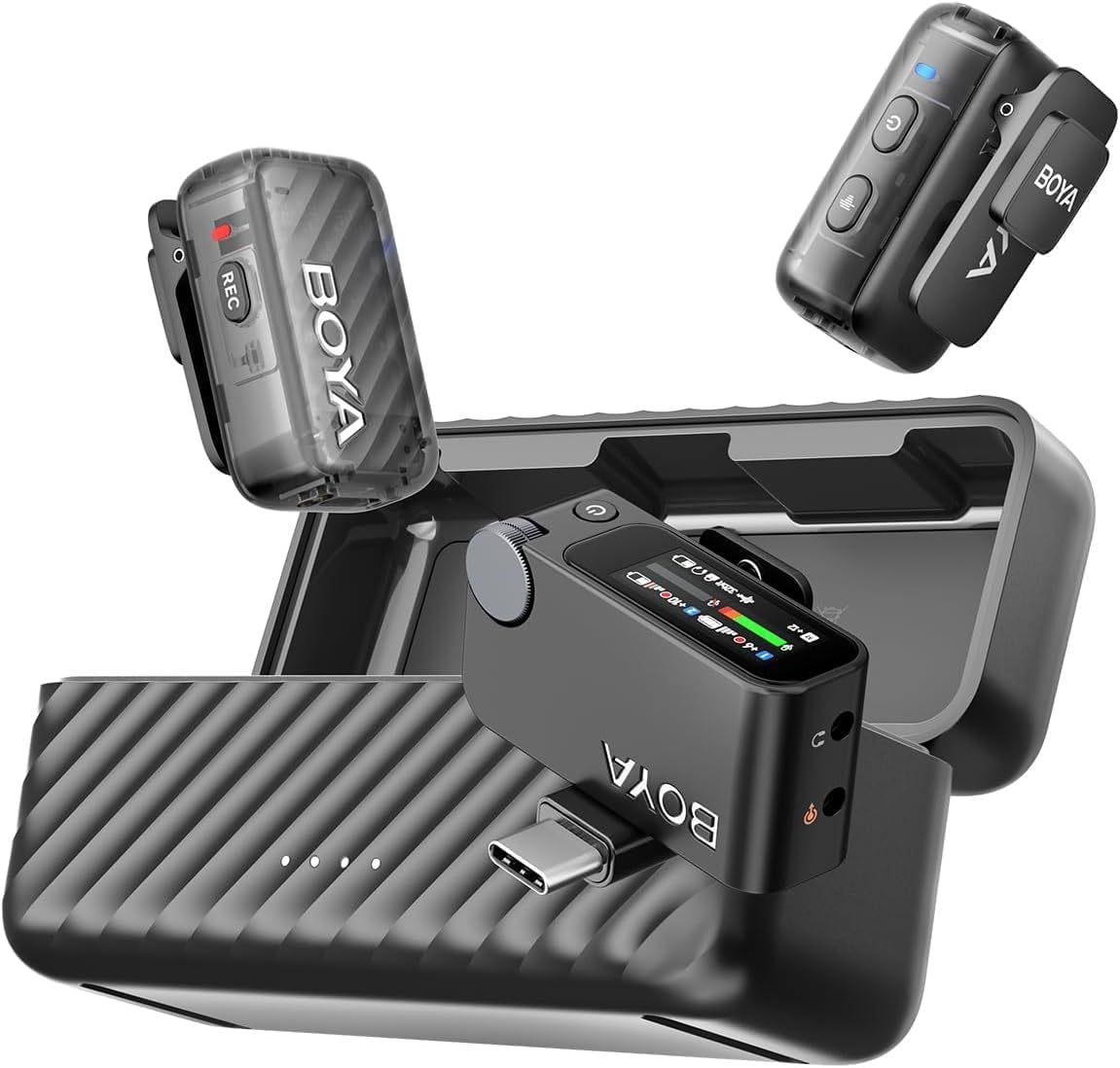 BOYA BOYAMIC 2 Micrófono Lavalier Inalámbrico para iPhone/Android/PC, Micrófono USB-C Mini Teléfono Móvil con Reducción de Ruido AI, 300M, 48KHz/32Bit, Micrófono de Solapa para Grabación de Video