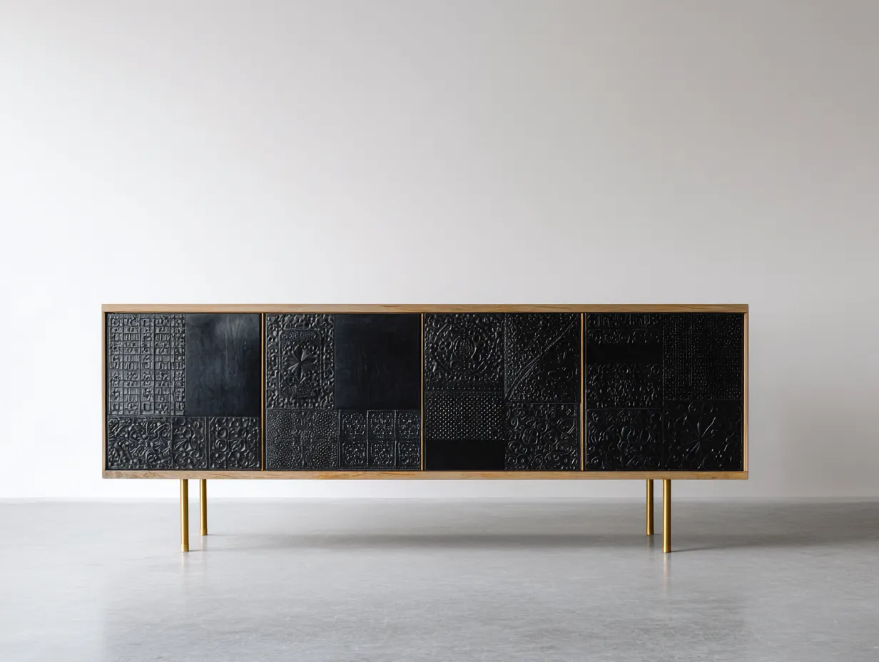 Mueble recibidor 180x40x75 cm - madera - negro-marrón-dorado - diseño contemporáneo