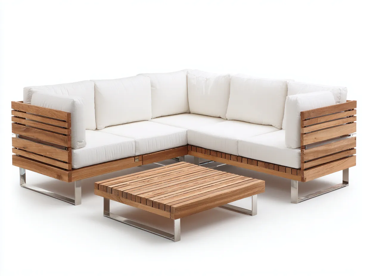 Sofás de jardín de madera con cojines 210x210x75 cm - madera natural-blanco - diseño modular exterior