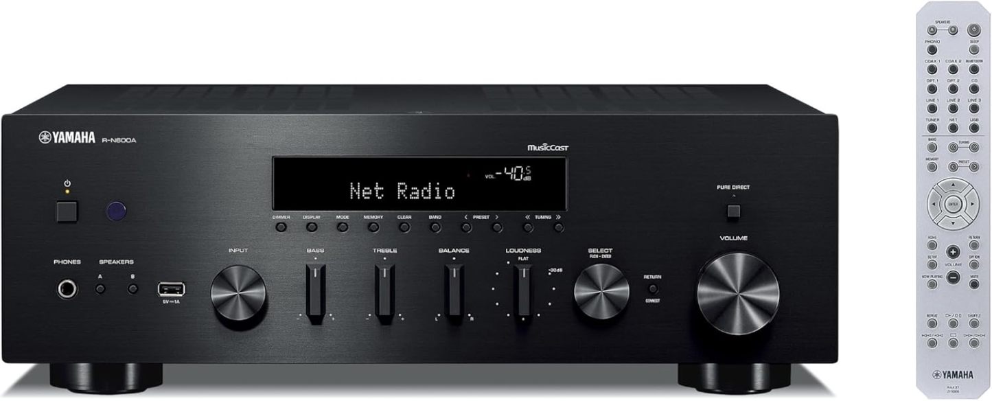Yamaha R-N600A Receptor de canales Hi-Fi, con MusicCast y streaming inalámbrico, audio de alta resolución, SABRE DAC y Pure Audio Fidelity, negro